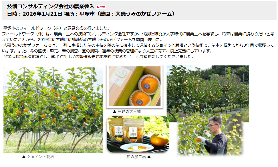 1月21日に、関東農政局が来社されまして、当社代表と意見交換を行いました。